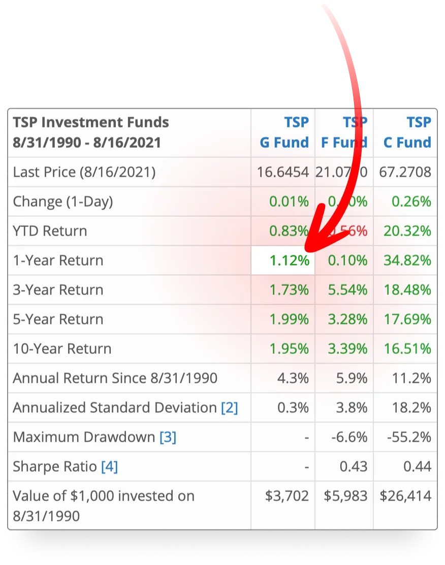 Most federal employees with G-Fund allocated TSPs earn 1% a year for the duration of their employment, and end up with far less than they need when their retirement kicks in.